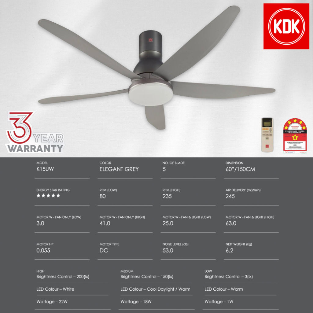 KDK Nikko Series (60"/150cm) Ceiling Fan Remote Control Type Fan Kipas Siling/ Kipas Ceiling(KOOK)