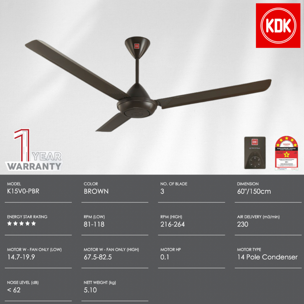 KDK K15V0 / DESIGNER / EUROWIND (60"/150cm) Ceiling Fan Kipas Siling with Energy Saving Motor
