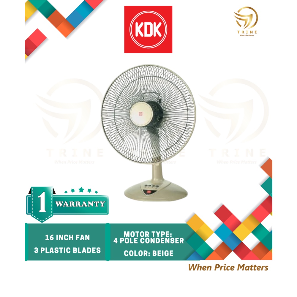 KDK KB404 16" TABLE FAN WITH CONDENSER MOTOR BEIGE/RED/BLUE KB-404