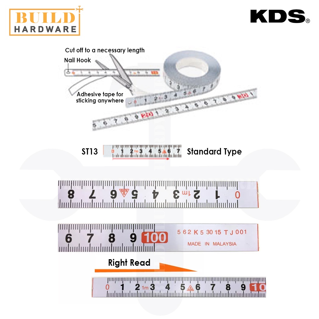 KDS Setting Measuring Tape 1M/2M/5M Right Hand Read | Stick-On Tape Measure self-adhesive Pita Pengukur ST13