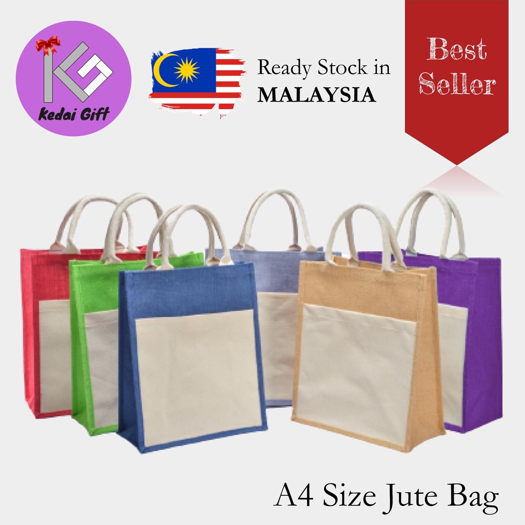 KEDAI GIFT Ready Stock / A4 Size High Quality Jute Bag / Bio Degradable Shopping Tote Bag / Reusable Bag / Canvas Bag