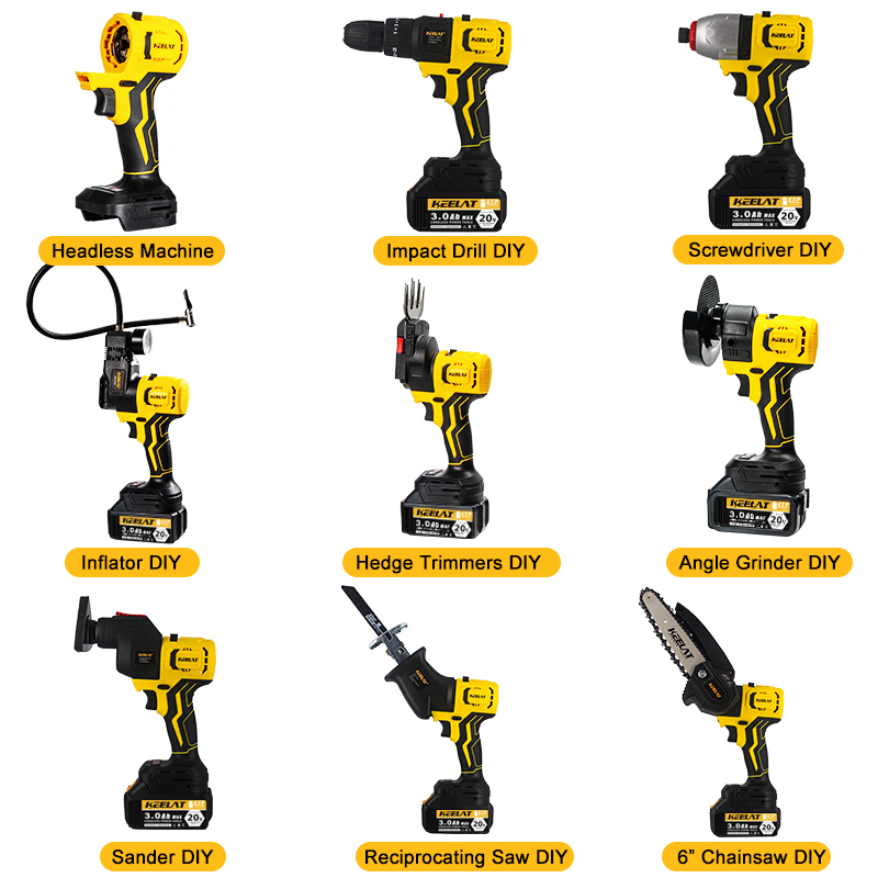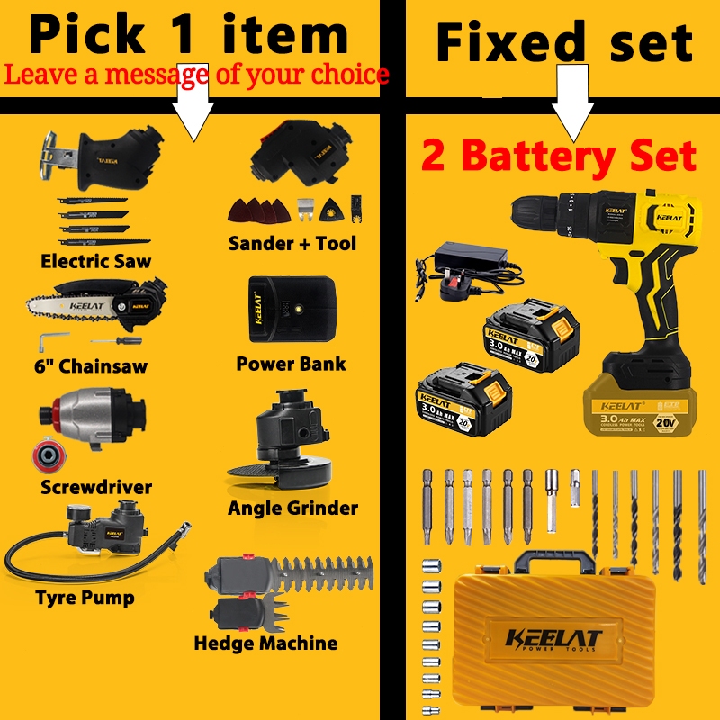 KEELAT 12 in 1 Multi-Optional Brushless Drill Set Combo Kit Cordless Drill Chainsaw Screwdriver Sander Power Tool DIY