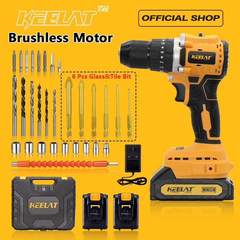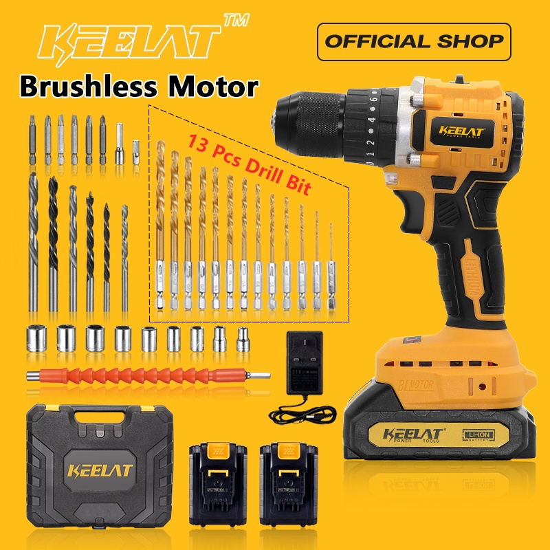 KEELAT 21V Brushless Drill/Driver Cordless Drill Bateri 2-Speed 3-Mode Lithium Bateri Hammer Drill Cordless Impact Drill
