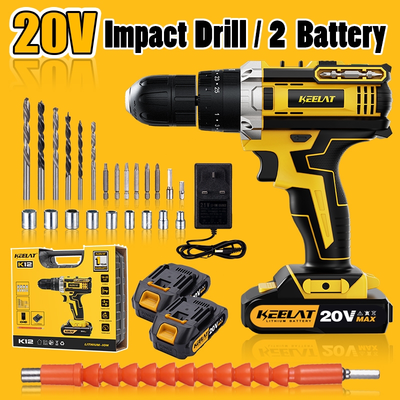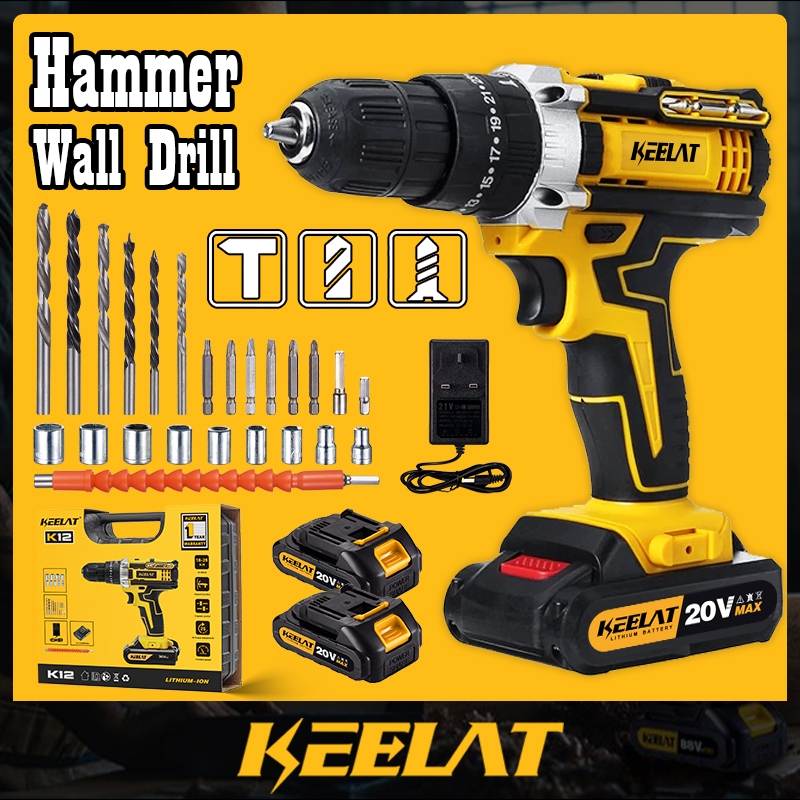 KEELAT KCD005 Drill Cordless Set Drill Battery Hand Drill Impact Drill Bateri Screwdriver Hammer Drill Bits With Light