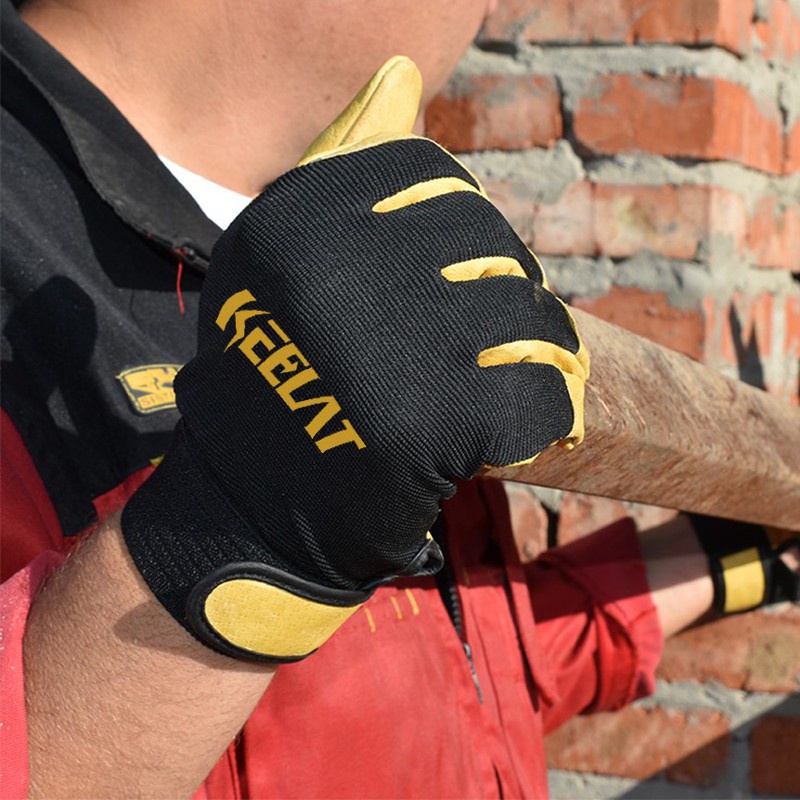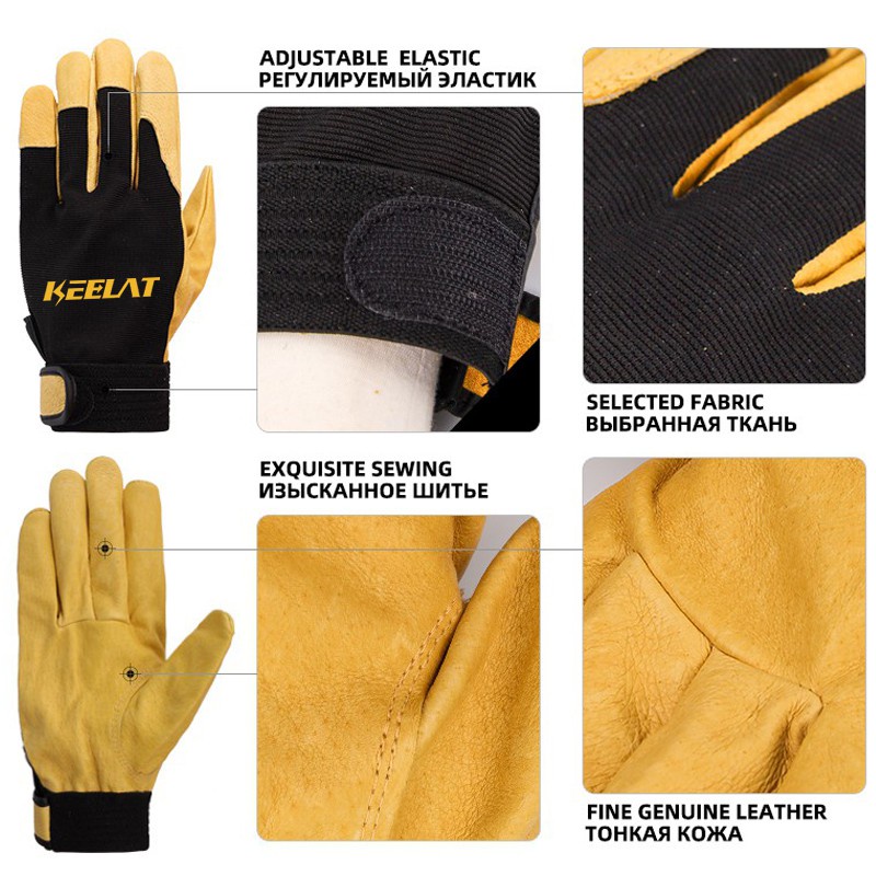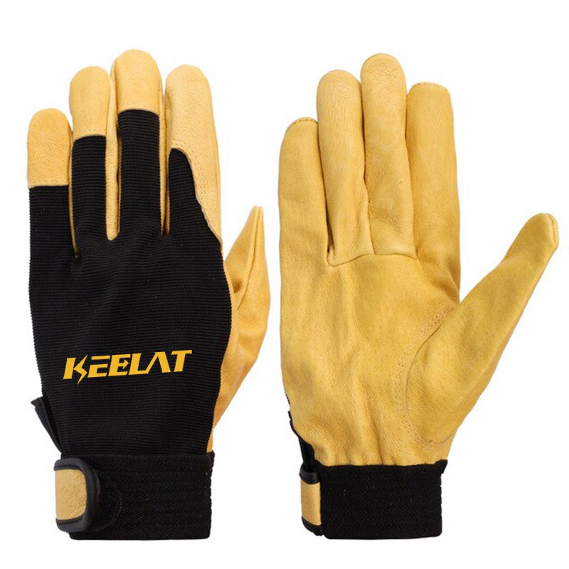 KEELAT Brand Maintenance Machinery Leather Wear-resistant Handling Protection Mens Work Gloves Safety Driving