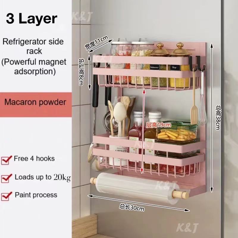 KEJA Creative Kitchen Hanging Rack Organizer Storage Kitchen Rak with Magnet Stand Rack Refrigerator Storage Rack Side