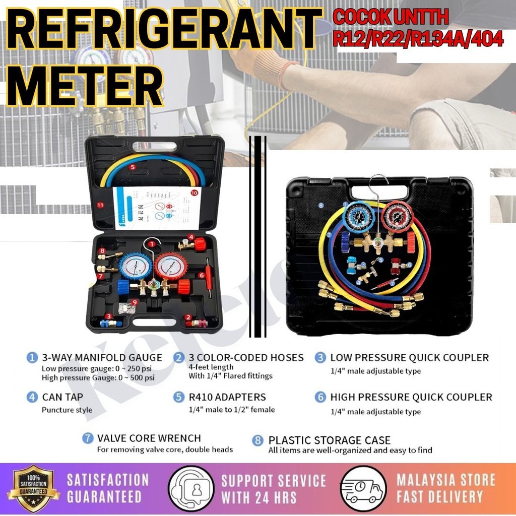 KELETOOL Meter Gas Aircond R134a Meter Set Car Aircon Manifold Gauge Freon Pressure Gauge AC Air Conditioner Repair Tool