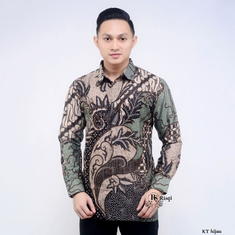 KEMEJA HIJAU NEWEST MEN'S BATIK SHIRT sweet Couple || Couple batik father and Batik son BATIK sage green Latest Batik 2024