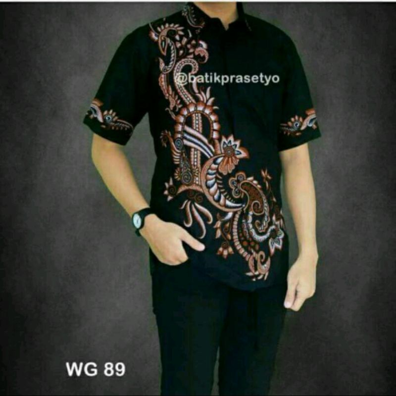 KEMEJA Men's batik, modern batik shirt ~ sweet black wayang batik shirt