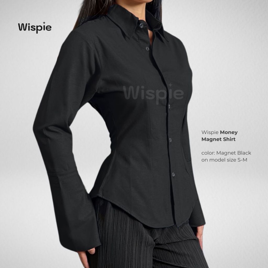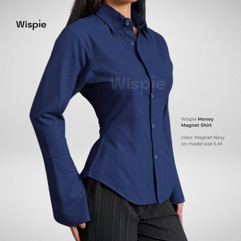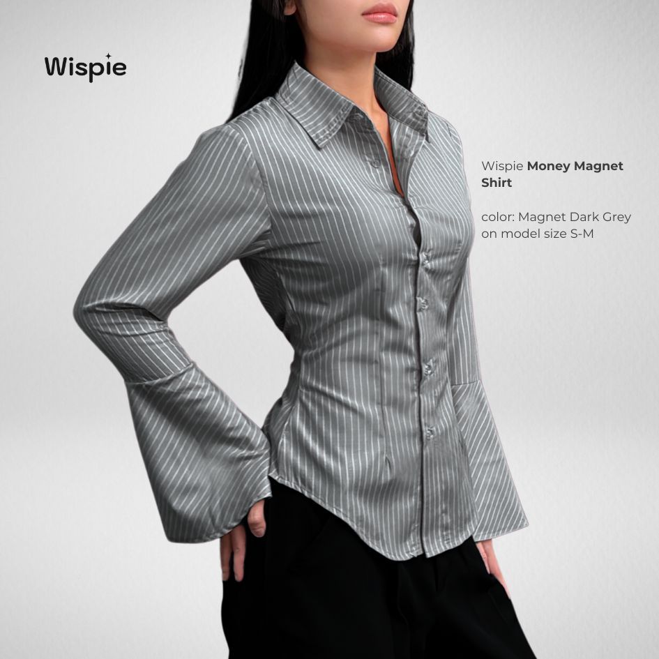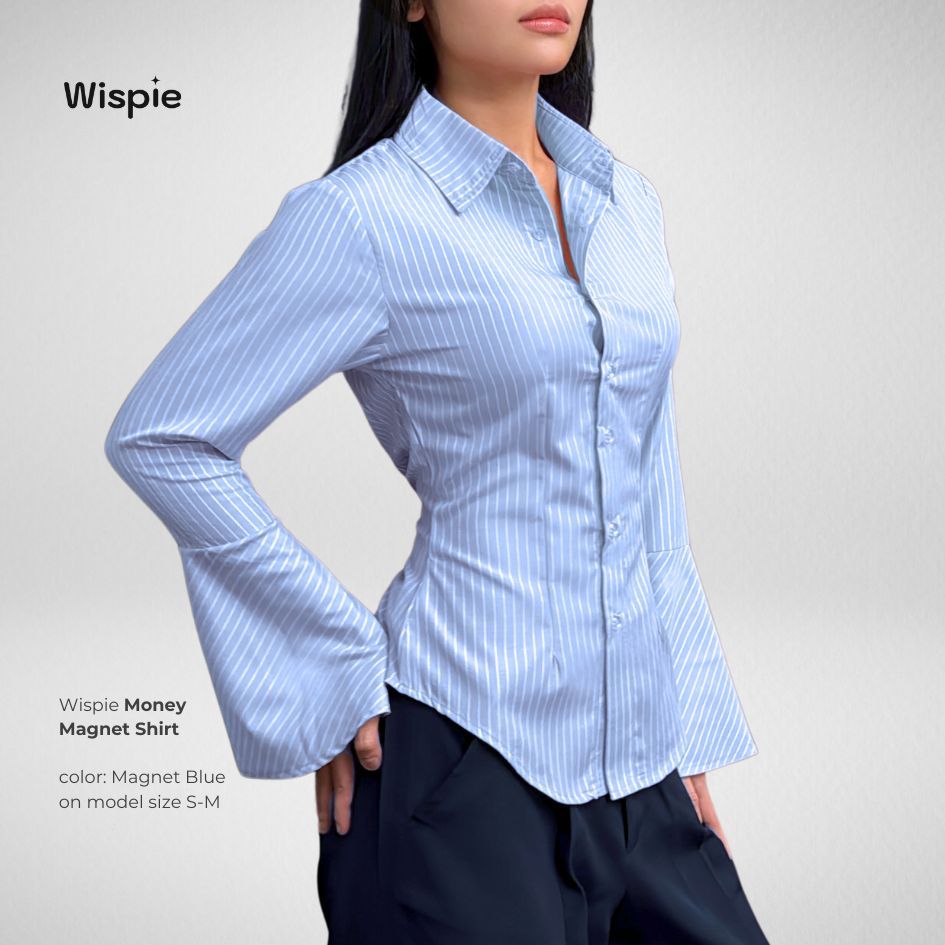KEMEJA Wispie Money Magnet Fitted Shirt | Women's Work Shirt Press Body Pinstripe Striped Pink Blue Elastic