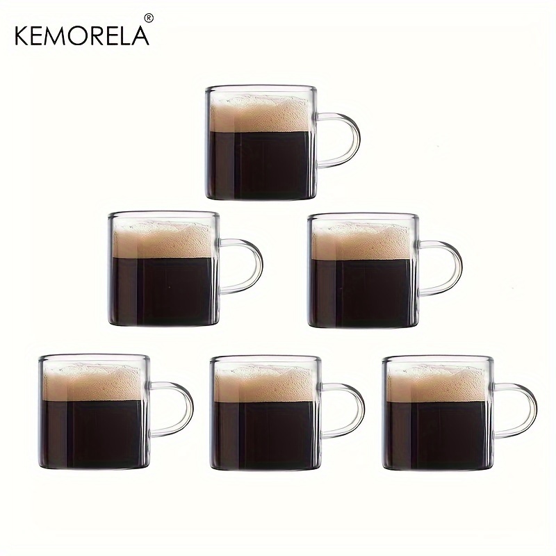 KEMORELA 6PCS Transparent Glass Cute Tea Cup Milk Glass Cup Small Transparent Glass Tea Cup With Handle High Tea Small Glass For Hot Or Cold Latte Fancy Tea Cups Set of Espresso Cups