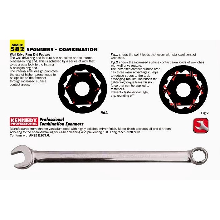 KENNEDY PROFESSIONAL COMBINATION SPANNER MIRROR FINISH 6-32 mm