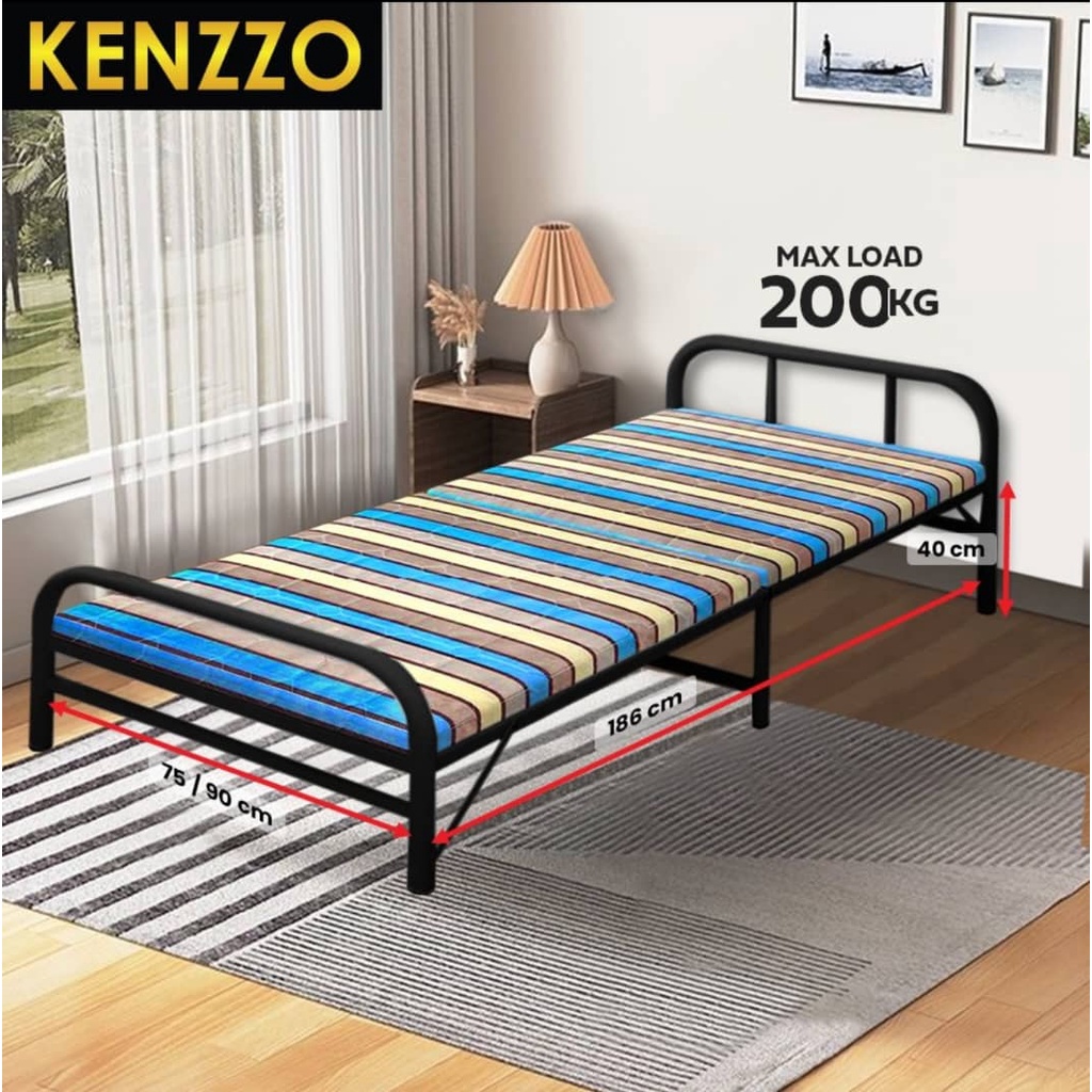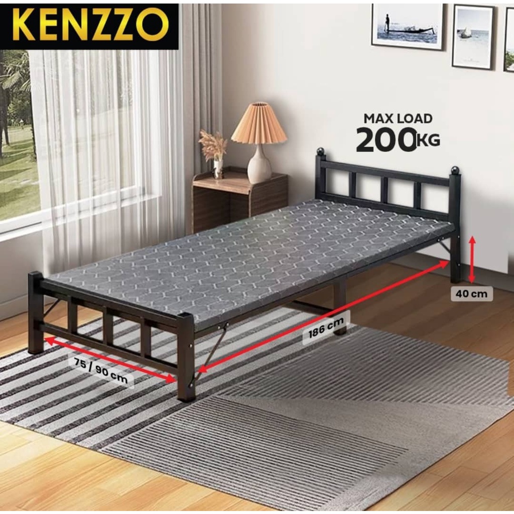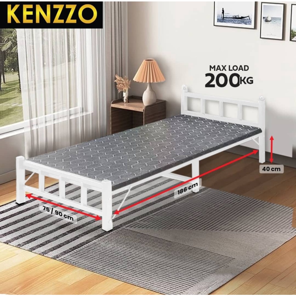 KENZZO: ARIES Metal Foldable Single bed frame with strong and stable leg/Katil Single / Metal bed Frame with FREE TOPPER