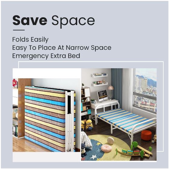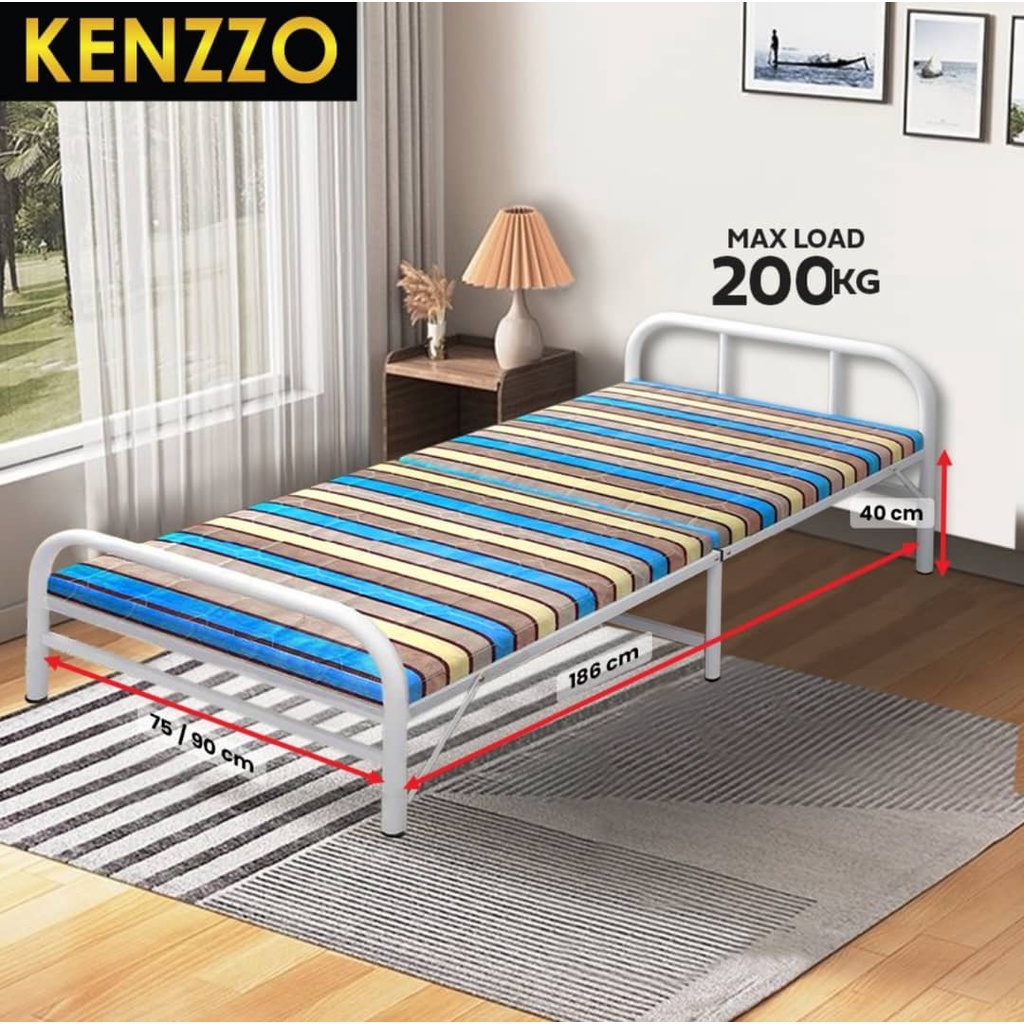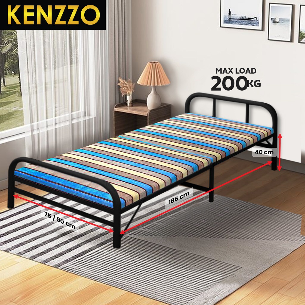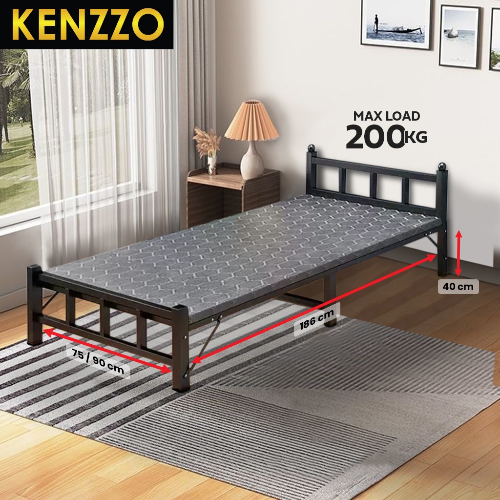KENZZO: ARIES Metal Foldable Single bed frame with strong and stable leg/Katil Single / Metal bed Frame with FREE TOPPER