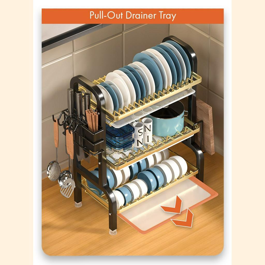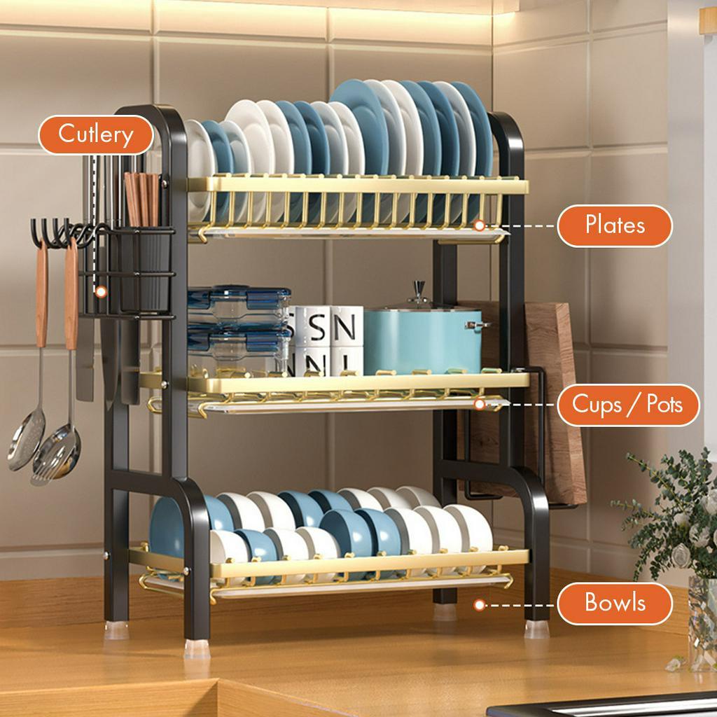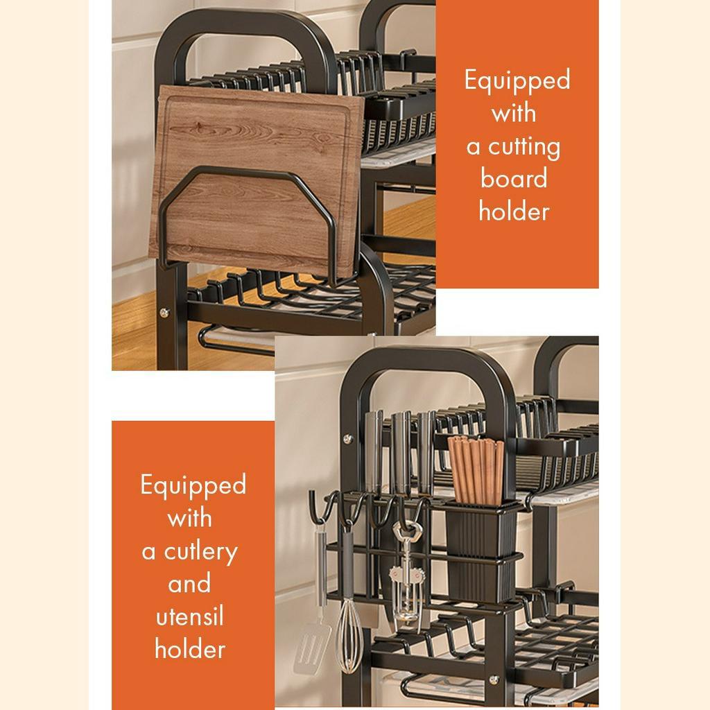 KENZZO : Stainless Steel Dish Rack Rak Dapur Kitchen Dish Drainer Storage Rack with Accessories / kikuyu Dish Rack