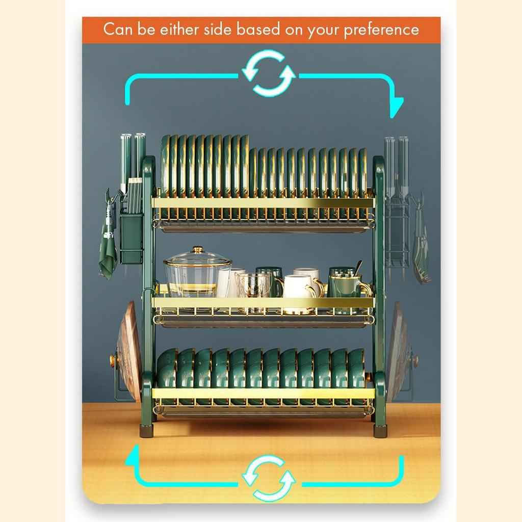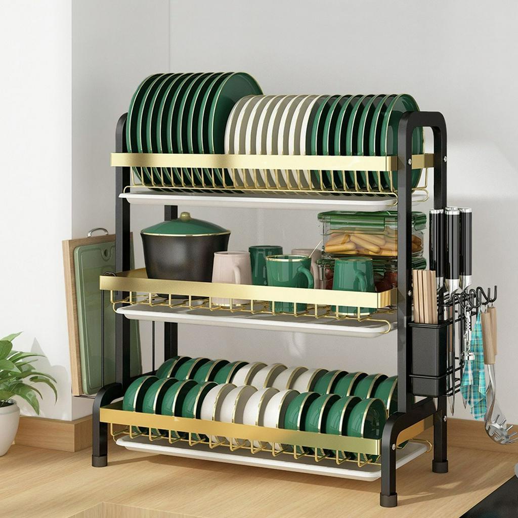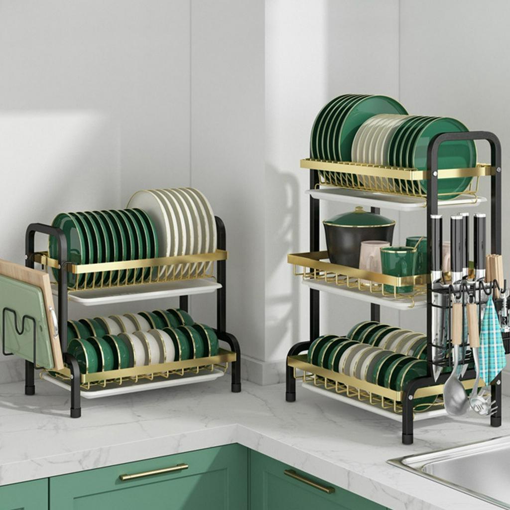 KENZZO : Stainless Steel Dish Rack Rak Dapur Kitchen Dish Drainer Storage Rack with Accessories / kikuyu Dish Rack