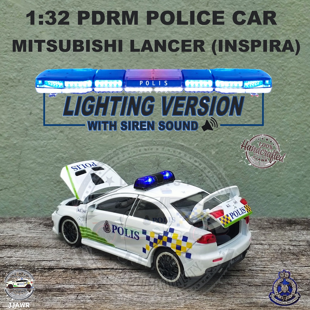 KERETA POLIS INSPIRA SIREN: 1:32 Mitsubishi Lancer Proton Inspira PDRM Police Car Model Diecast Toy Car Replica