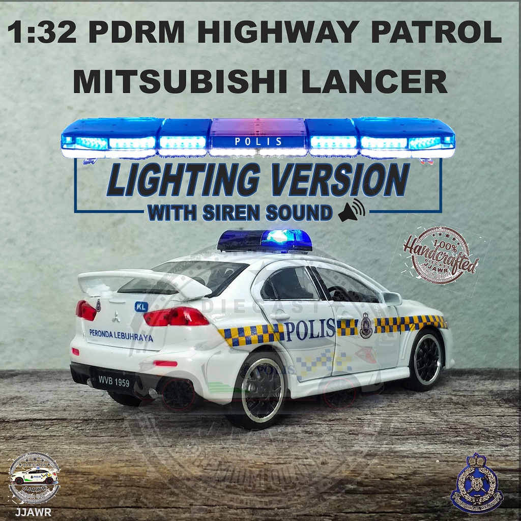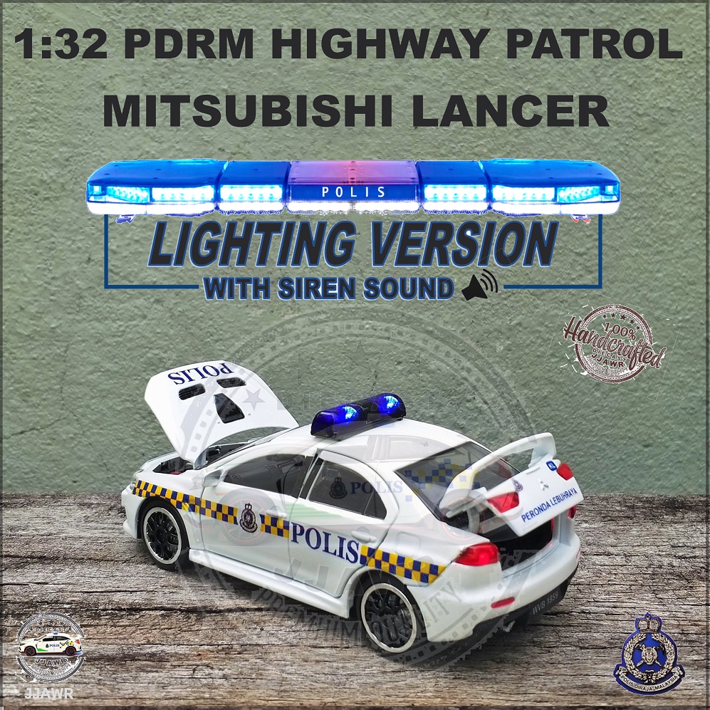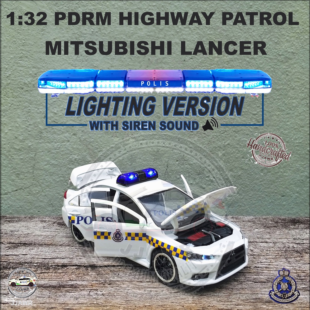 KERETA POLIS LANCER SIREN 1:32 Lancer Highway Patrol Peronda Lebuhraya PDRM Police Car Model Diecast Toy Car Replica