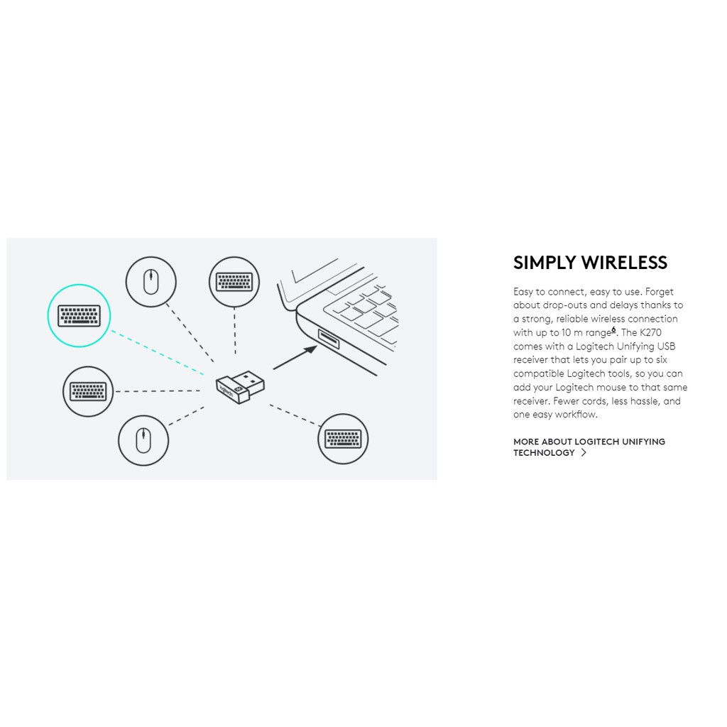 KEYBOARD / LOGITECH K270 WIRELESS KEYBOARD / USB RECEIVER WIRELESS / WITH BATTERIES / BLACK / 3Y /