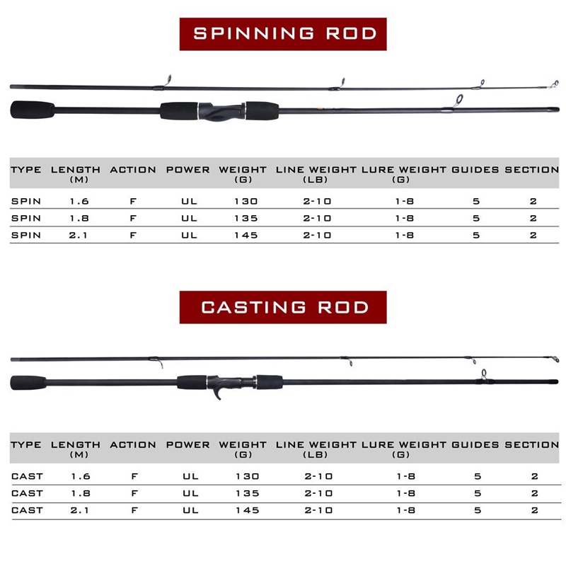 KFT Fishing Rod Joran Pancing Batang Mancing Casting Spinning Carbon Fiber Ultra Light UL Baitcasting