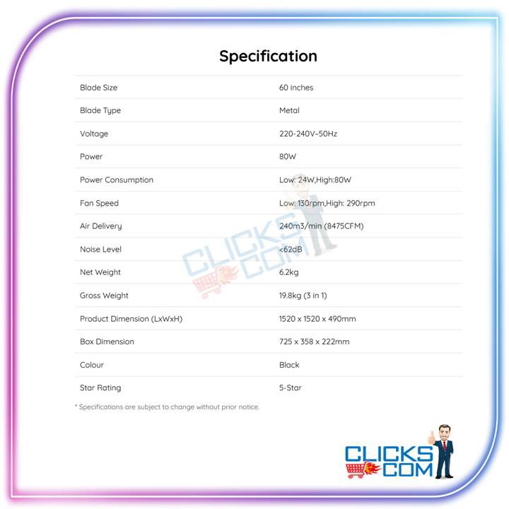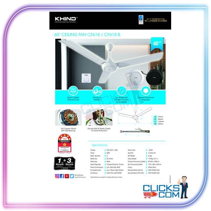 KHIND 60" CF618B Ceiling Fan with Regulator