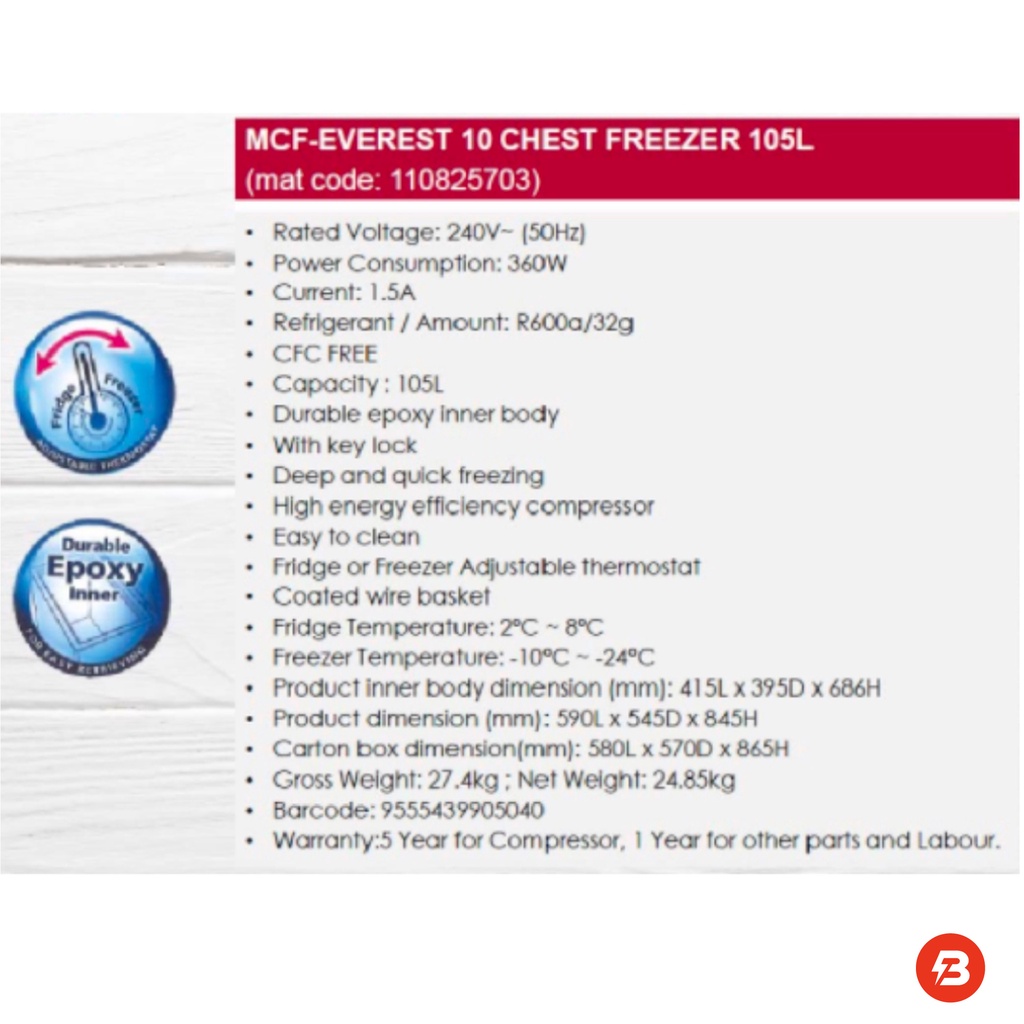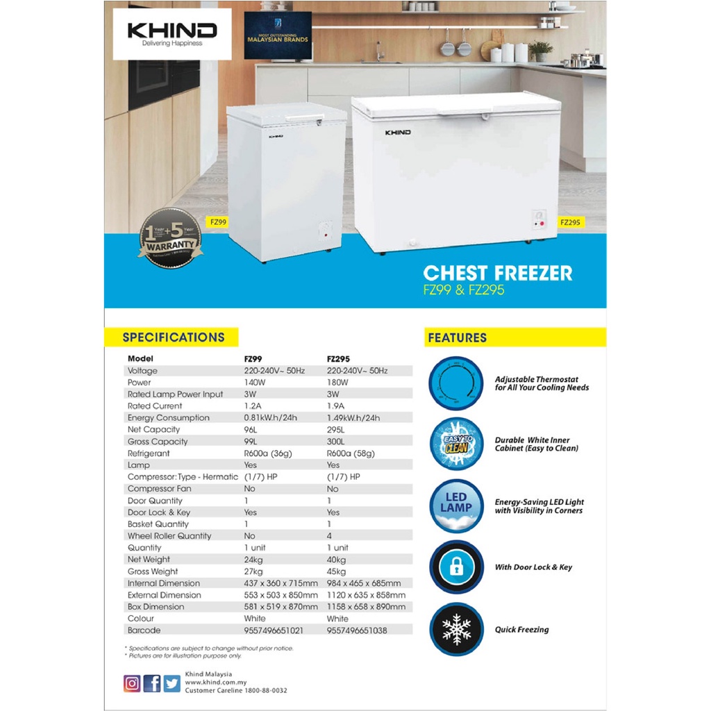 KHIND 99L Chest Freezer FZ99/MORGAN 105L Chest Freezer MCF-EVEREST 10