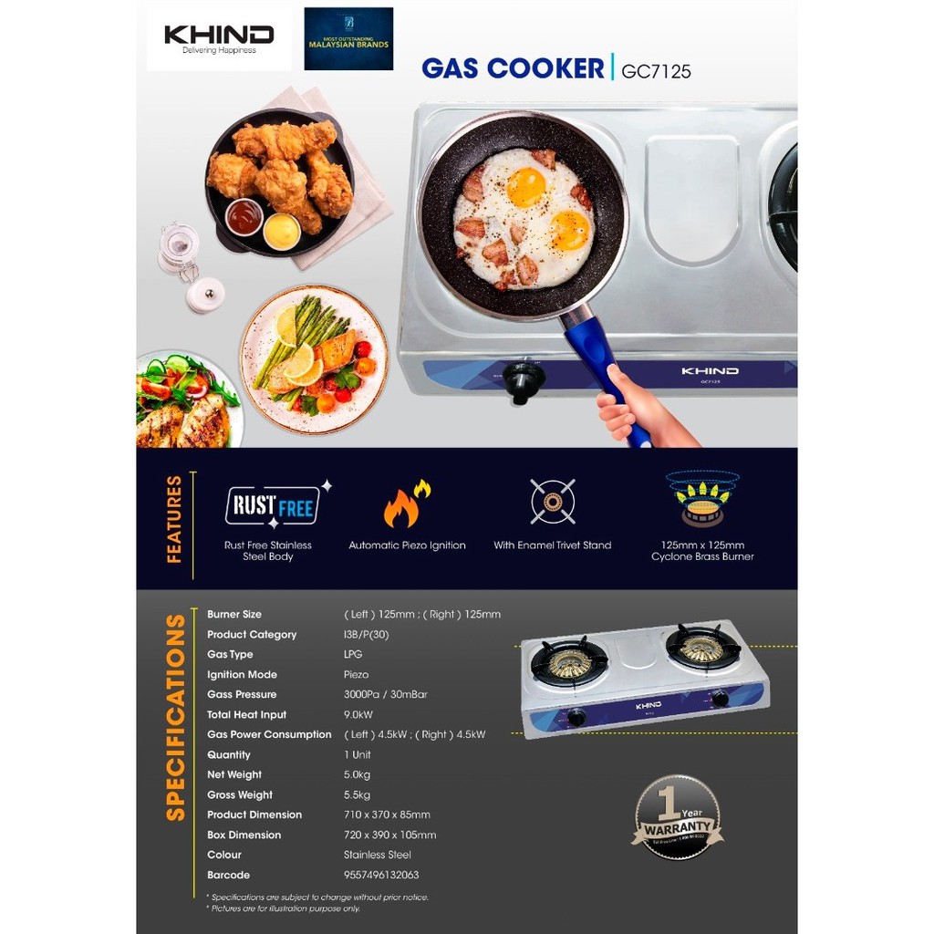 KHIND GC7125 Stainless Steel Body Double Gas Cooker / Khind Gas Cooker GC6010