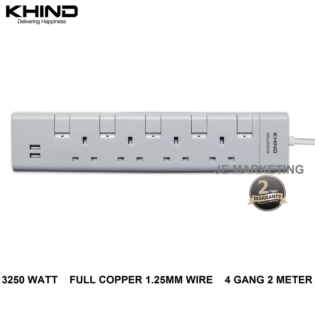 KHIND TRAILING SOCKET WITH 2 USB LN8354U/ LN8355U