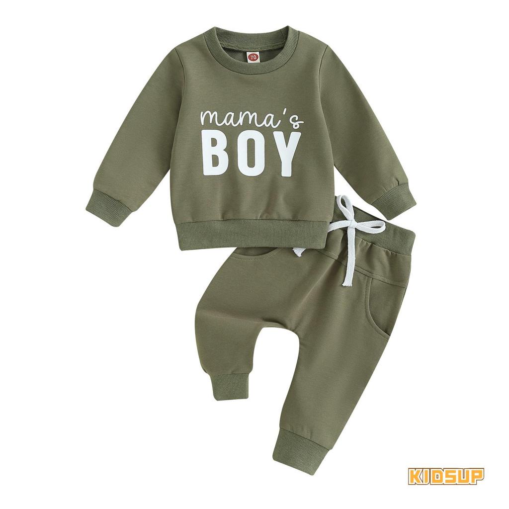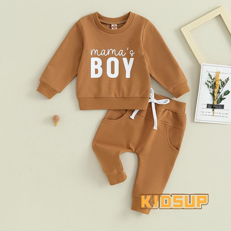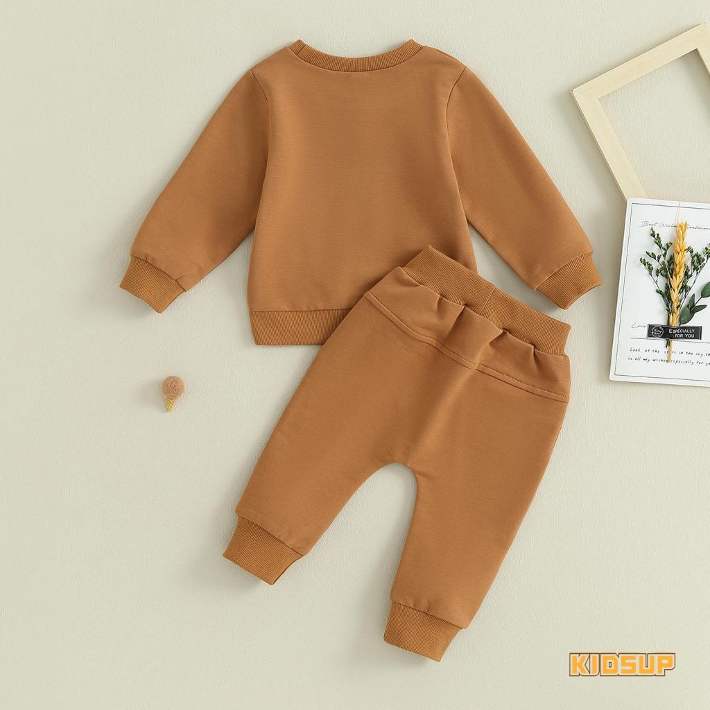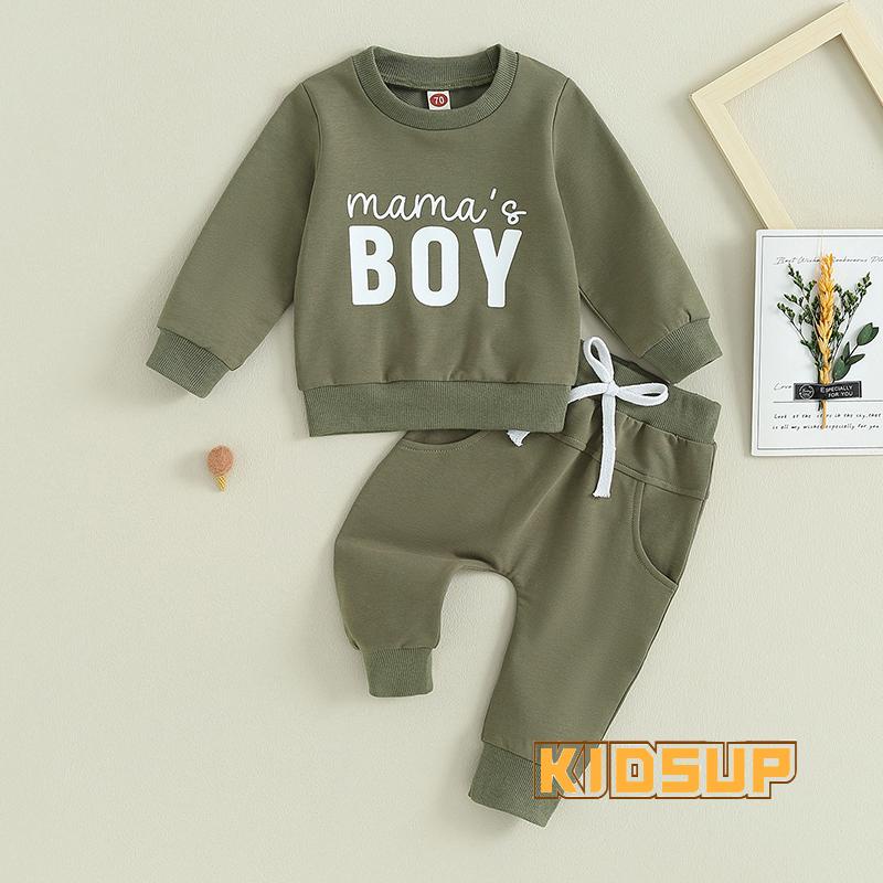 KIDSUP-Baby Boys Outfits Newborn Letter Print Round Neck Long Sleeve Sweatshirt and Drawstring Pants Set Infant Pants Suits