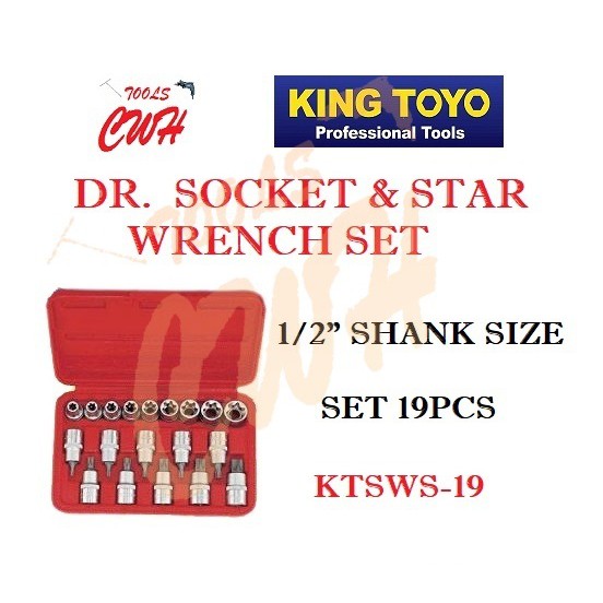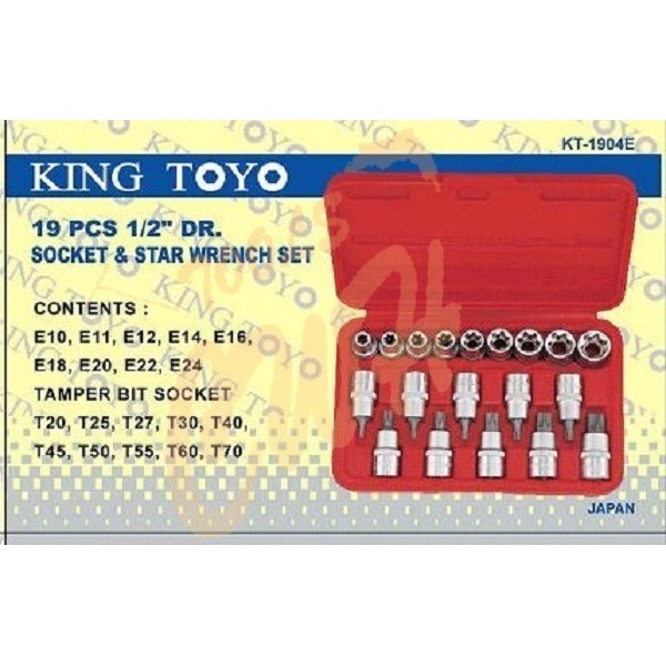 KING TOYO KTSWS-19 1/2" 19PCS DR E-TYPE TORX STAR SOCKET SET TAMPER BIT BOX SPANNER KINGTOYO
