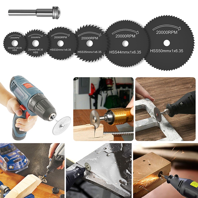 KIPRUN 7Pcs Mini HSS Circular Saw Blade Rotary Tool For Dremel Metal Cutter Power Tool Wood Cutting Discs Drill Mandrel Cutoff 22-50mm