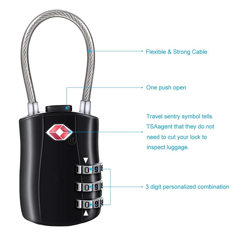 KIPRUN TSA Approved Luggage Lock, 3-Digit TSA Customs Code Lock, Keyless Password Padlock, Travel Suitcase Duffle Bag Locker Combination Lock