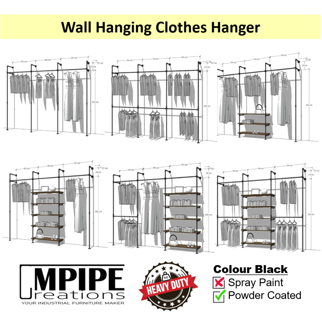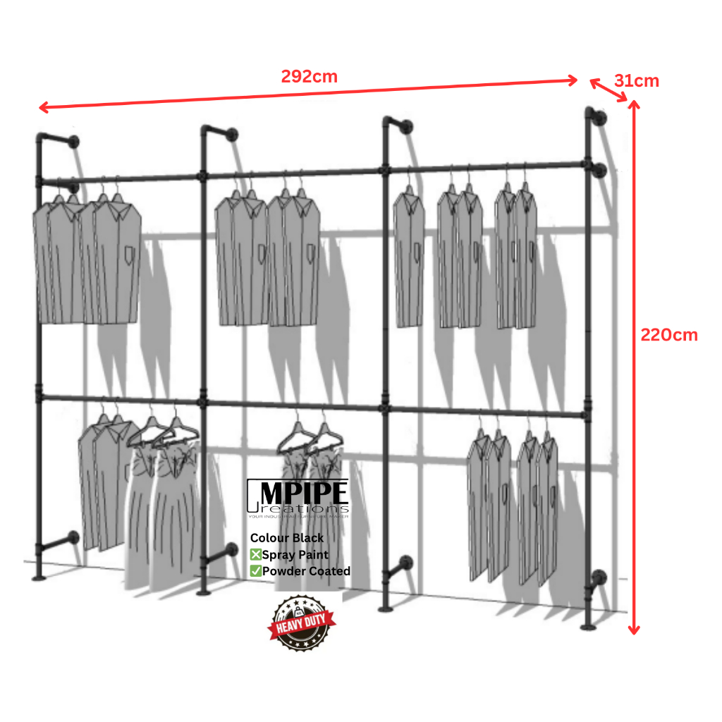 KIT III double open wardrobe Clothes hanger/Rak baju besi/Ampaian baju/tempat sangkut baju/Stabil padat dan kukuh/