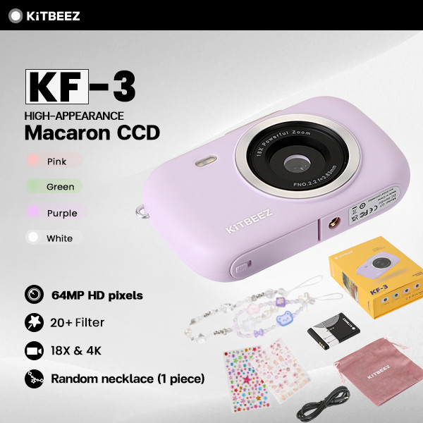 KITBEEZ-KF3✨64MP Macaroon CCD Digital Camera 18X Anti-Shake With Flashlight Video Vlogging Camera for Students Camera
