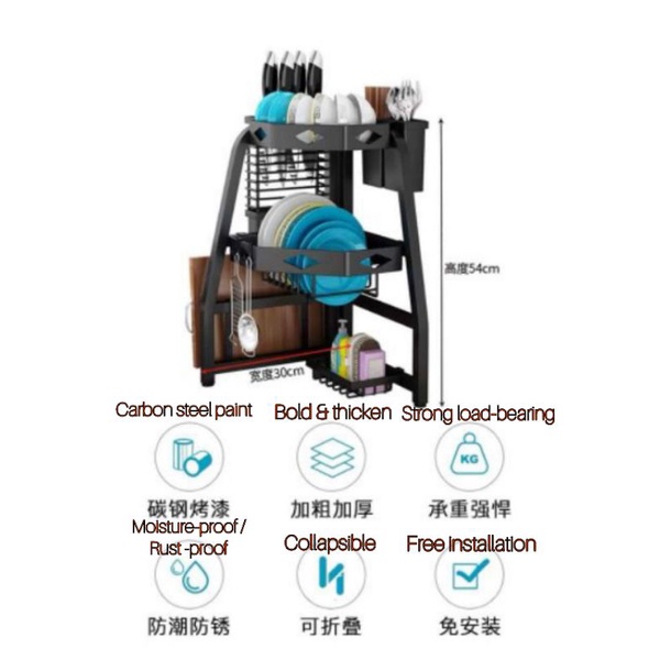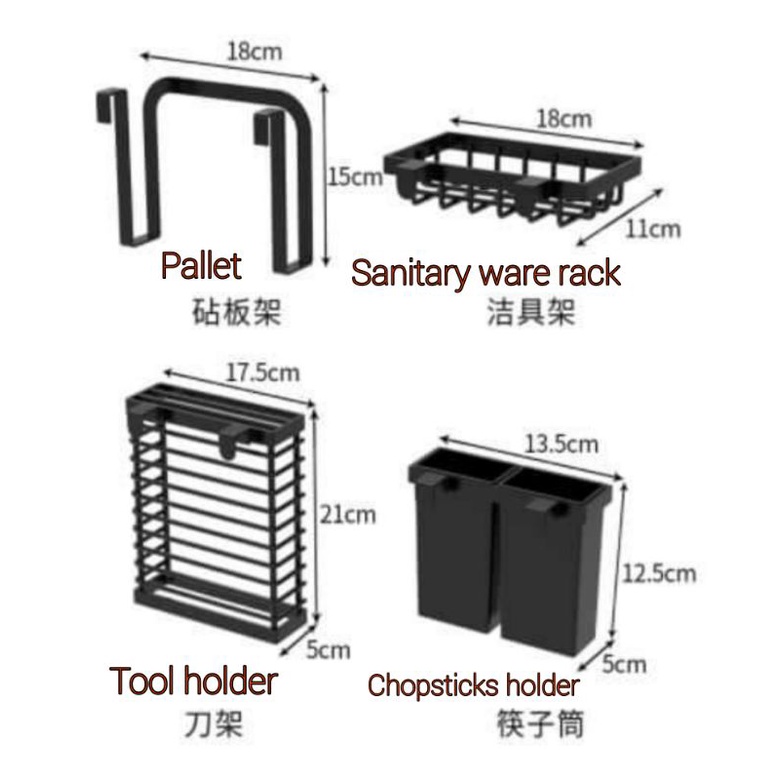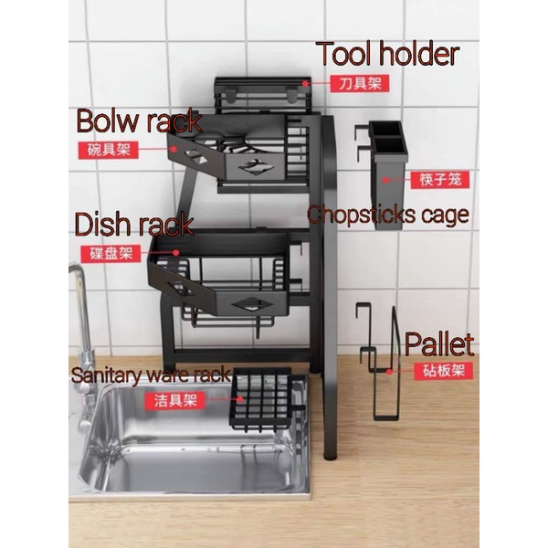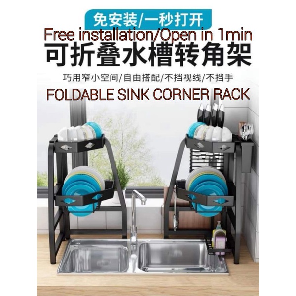 KITCHEN SINK CORNER DISH STORAGE RACK BLACK CARBON STEEL PAINT STANDARD/ FULL SET