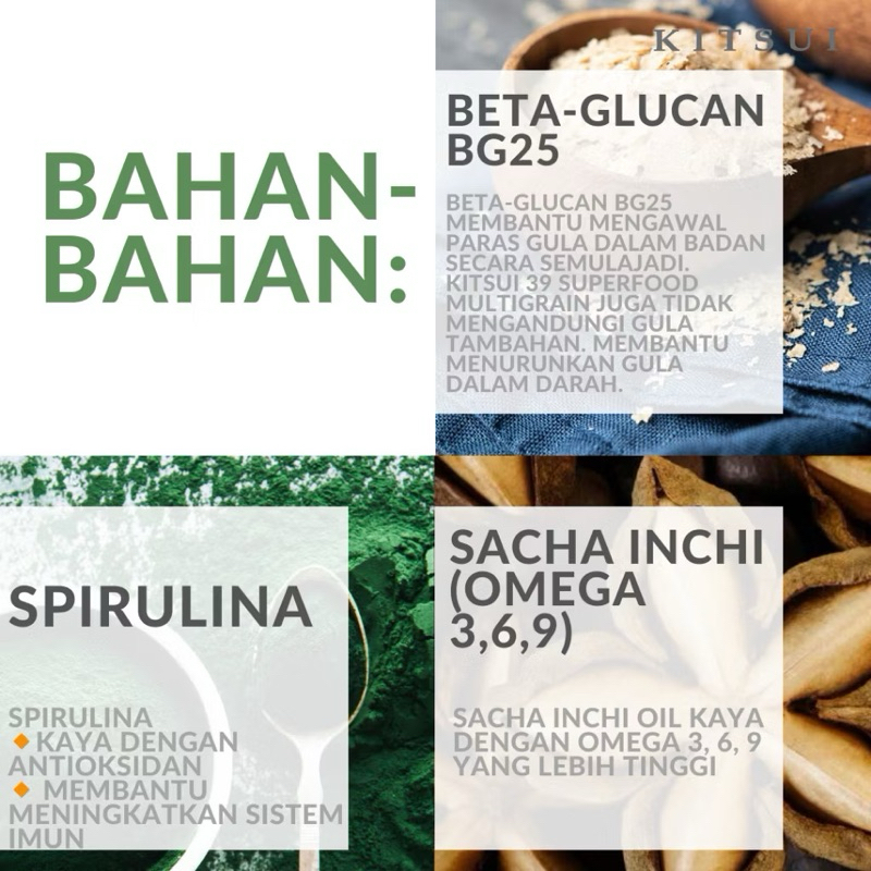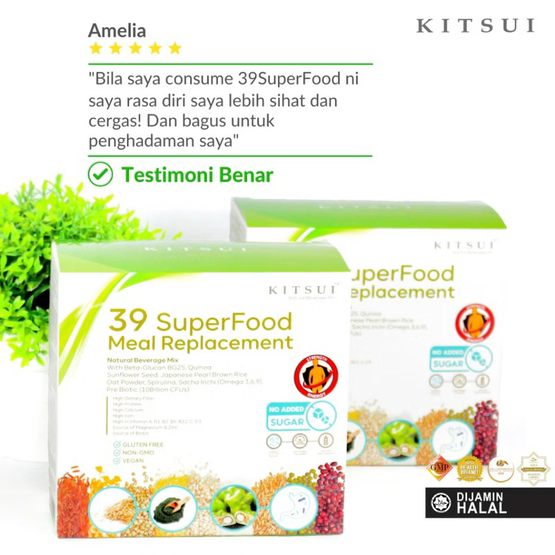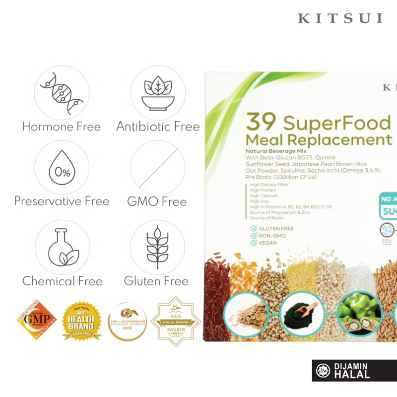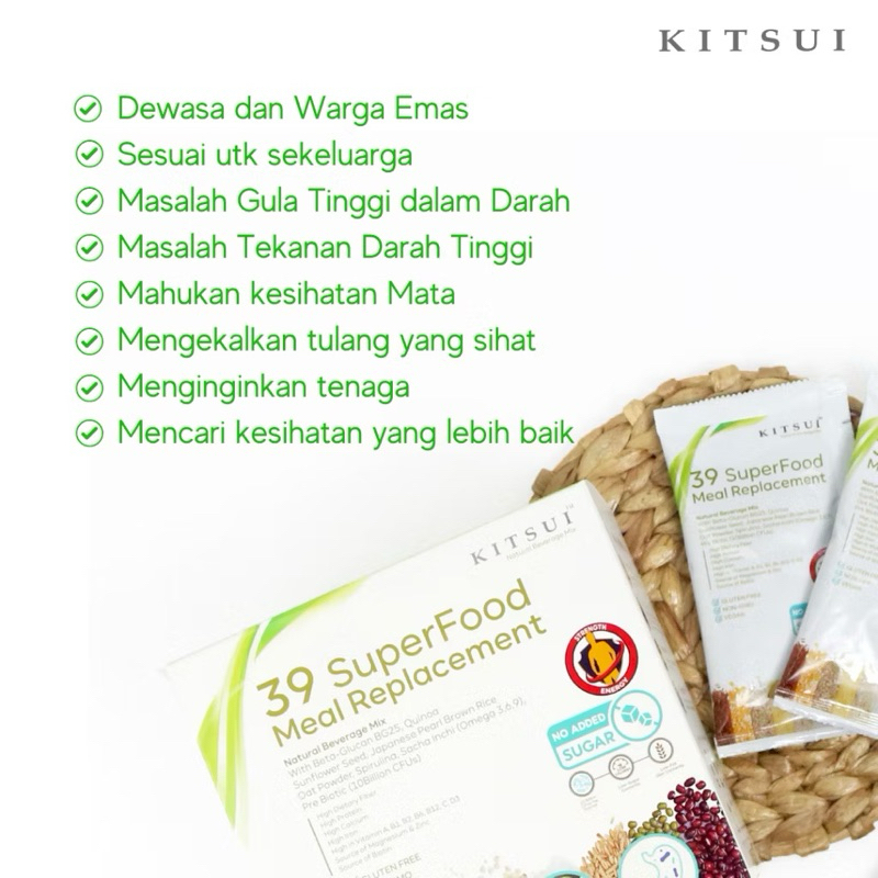 KITSUI 39 SuperFood Meal Replacement 15's x 30g | Tiada Gula | Sendi | Tulang | Mata | Supplement
