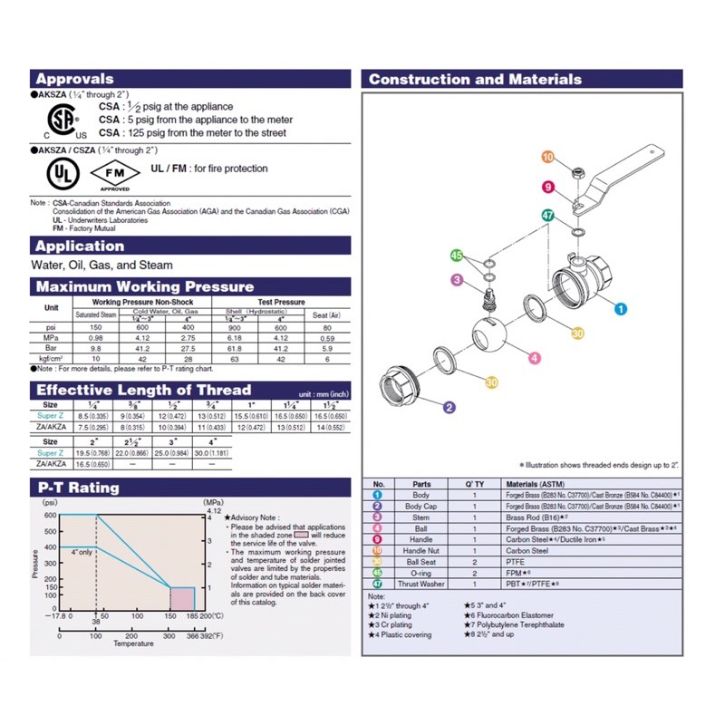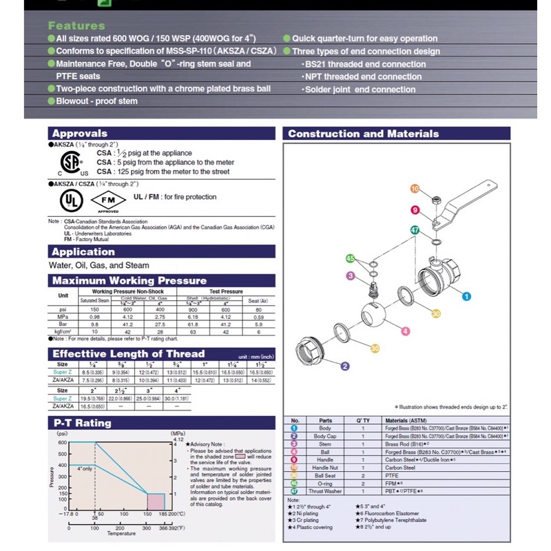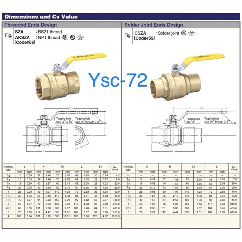 KITZ BRASS BALL VALVE (SZA SERIES) 1/4'' ~ 3/8'' MADE IN JAPAN (Full Bore)