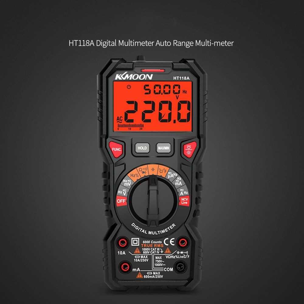 KKmoon HT118A Digital Multimeter Auto Range Multi-meter 6000 Counts True RMS Measuring AC/DC Voltage Current Resistance