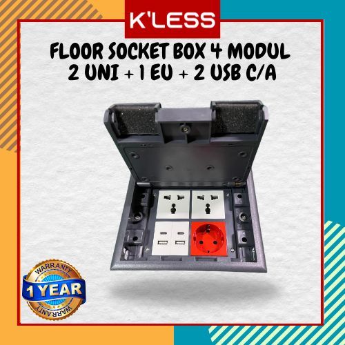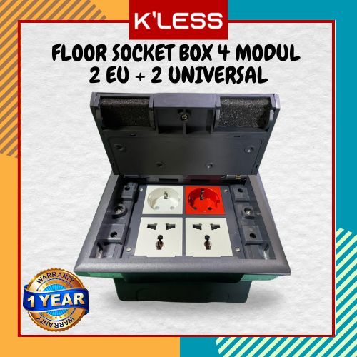 KLESS Floor Socket Box Built-in Floor outlet System 4 GANG 5 MODULE - UNI - DATA CAT 6 - HDMI - 2 EU SOCKET