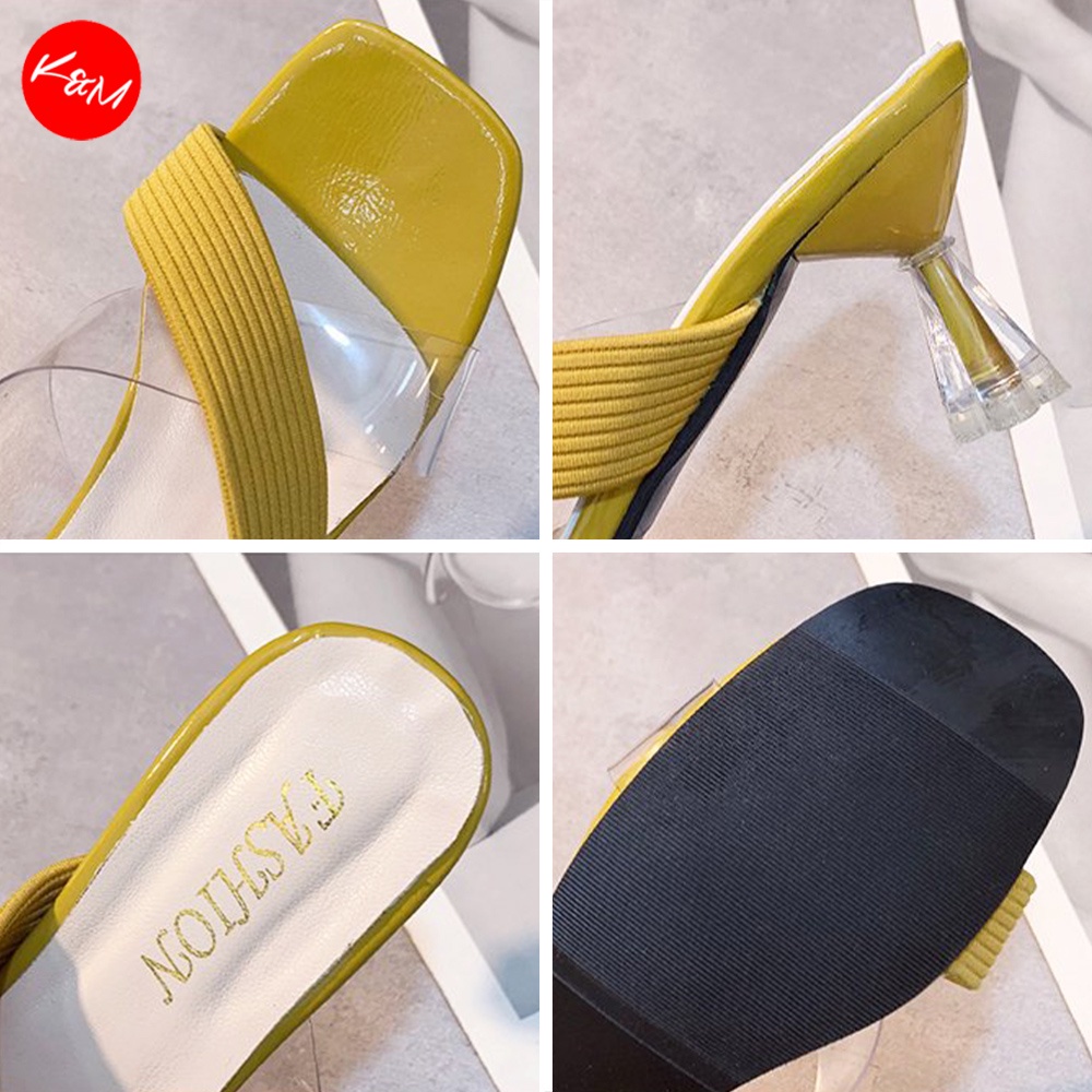 KM Women Knit Stitching Transparent Cross Heel Kasut Tinggi Perempuan Wanita [SH34475]