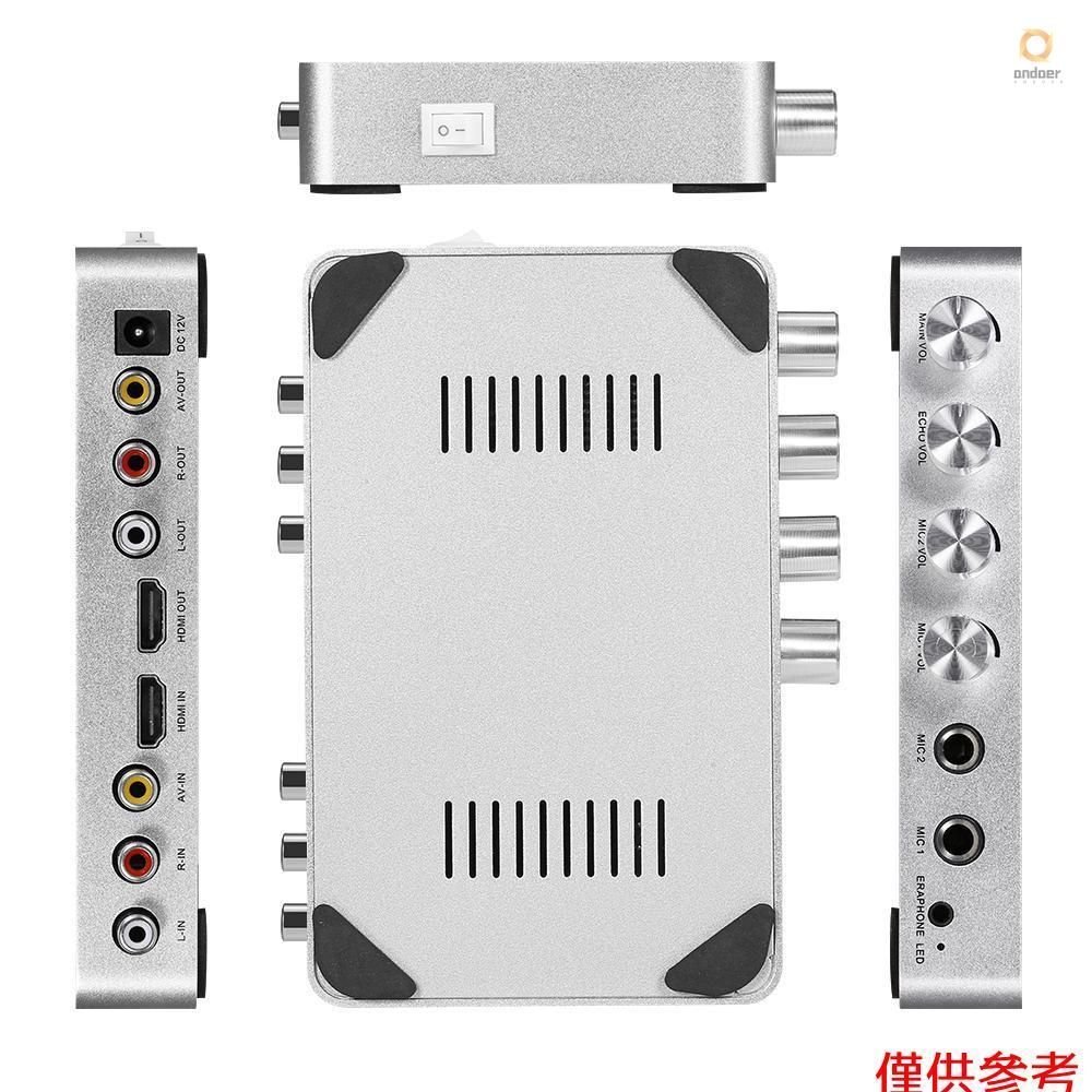 KM200 Karaoke Sound Mixer Portable Digital Stereo Audio Echo System 4K/2K HDMI Karaoke Amplifier with Dual Microphone EU Plug