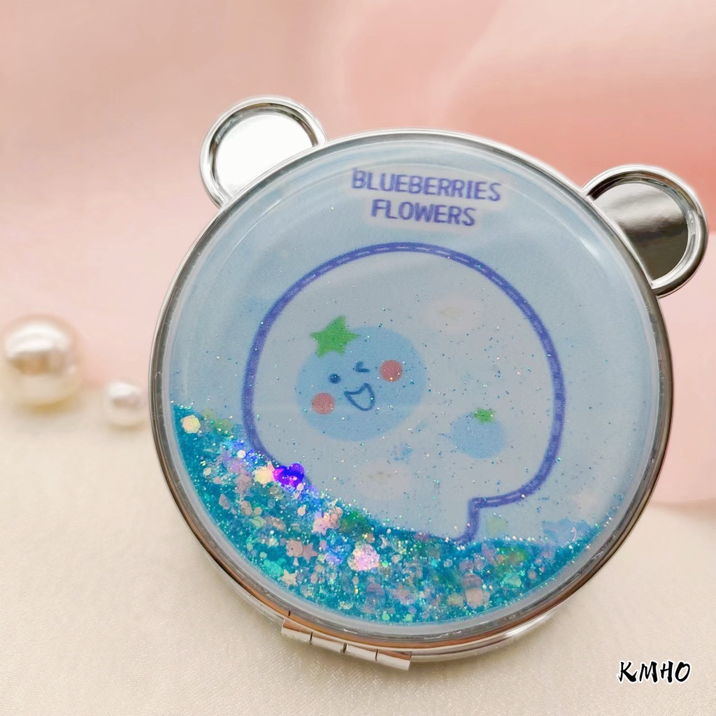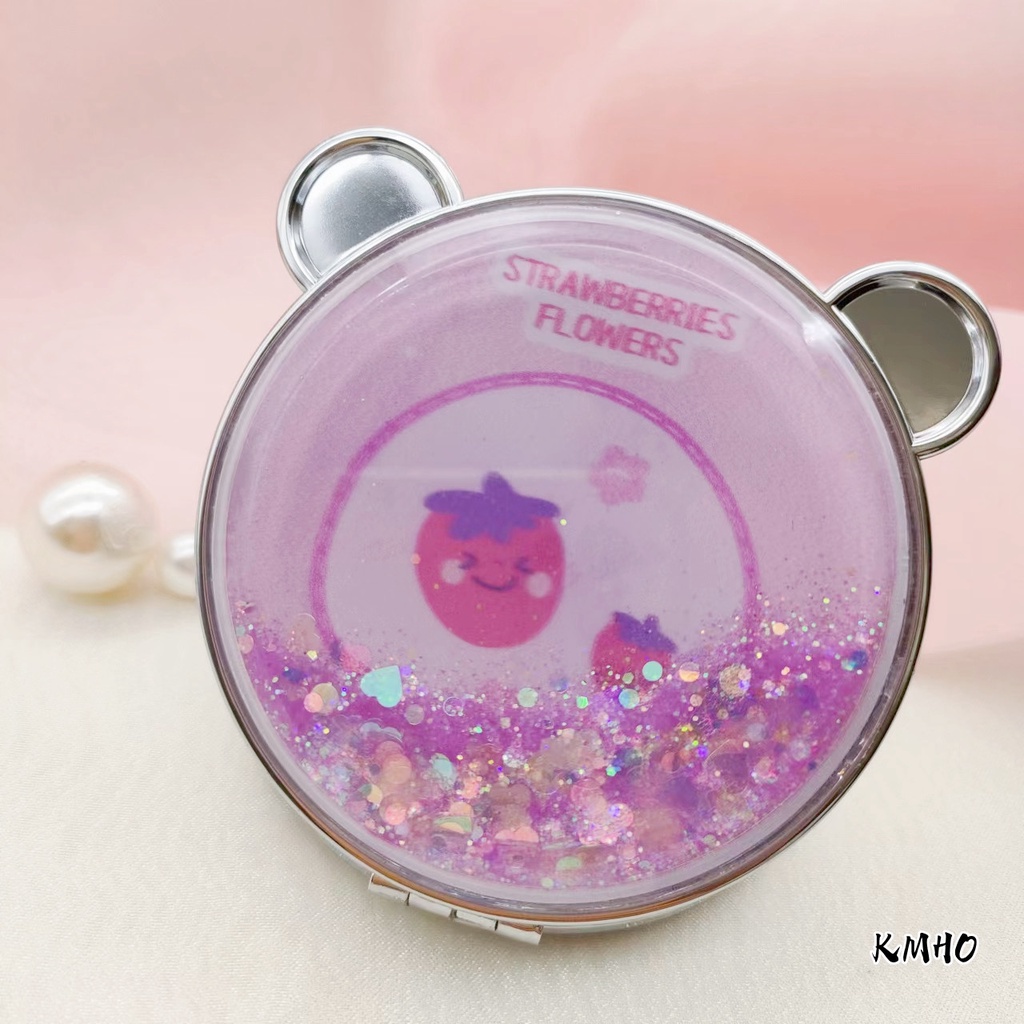 KMHO Cartoon small mirror net red quicksand cute mini hand-held makeup mirror flip type high-definition small round mirror easy to carry girls' makeup mirror