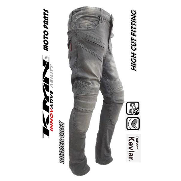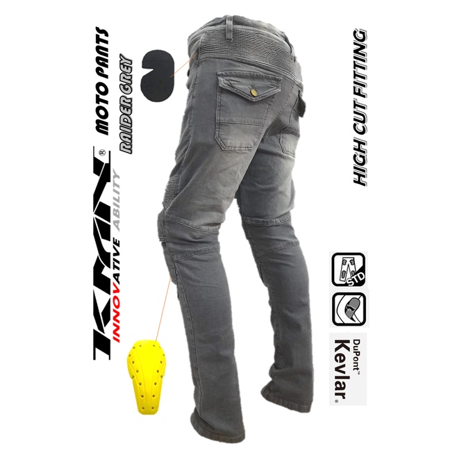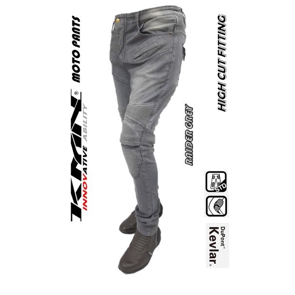 KMN MOTO PANTS RIDING KEVLAR DENIM JEAN SUPERFIT ELASTIC PROTECTOR PANT MOTORSPORT P718 NEW MODEL 2022 RAIDER GREY
