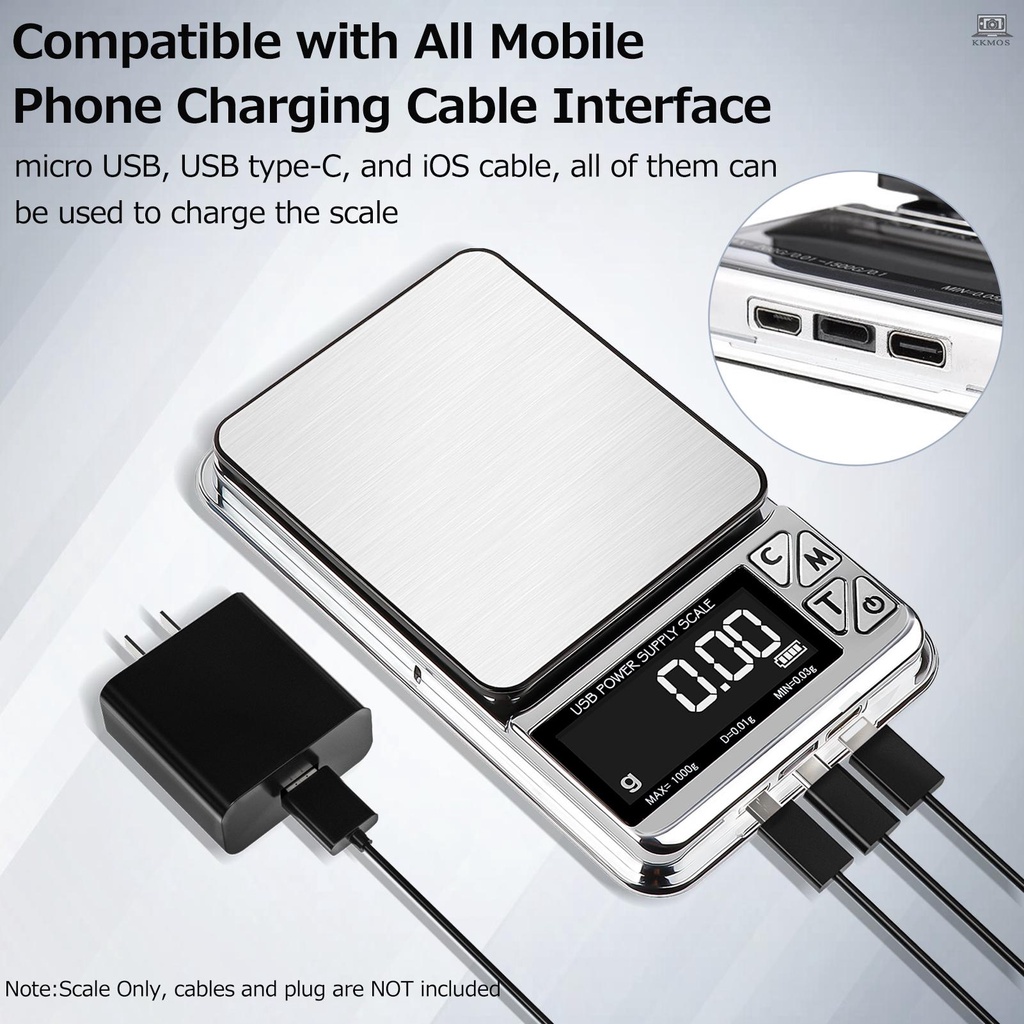 KMOS Rechargeable Digital Pocket Scale Jewelry Electronic Scale Mini Scale USB Power Supply Scale 2-inch LCD Display Tar