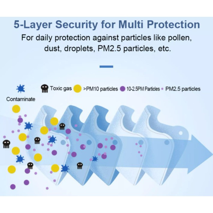 KN95 MASK 5 LAYERS PROTECTION KN95 FACE MASK Earloop Adult Face Mask topeng mulut (50 Pcs)