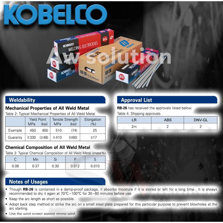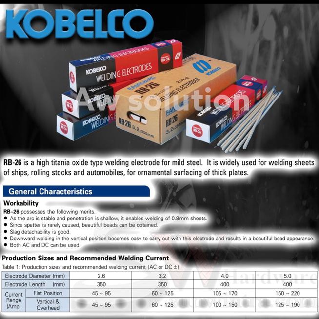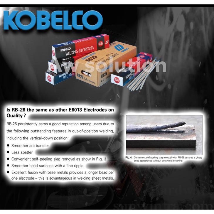 KOBELCO 2.6MM/3.2MM/4.0MM/5.0MM WELDING ELECTRODE/ WELDING ROD RB26 E6013 X 5KG (4 SIZE AVAILABLE)