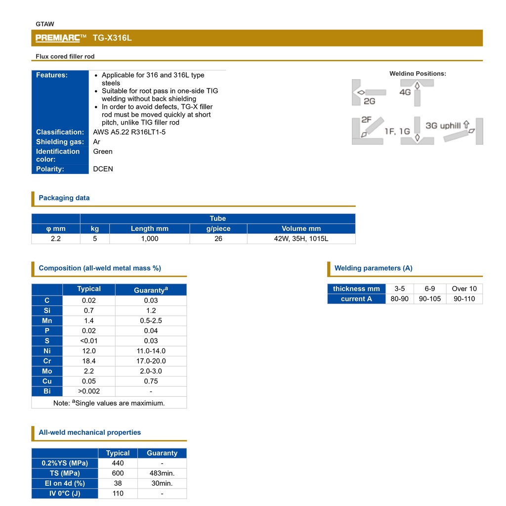 KOBELCO WELDING TIG ROD TG-X316L ( TGX316L , TGX-316L ) E316LT1-5 - 2.2 X 1000MM 5KG