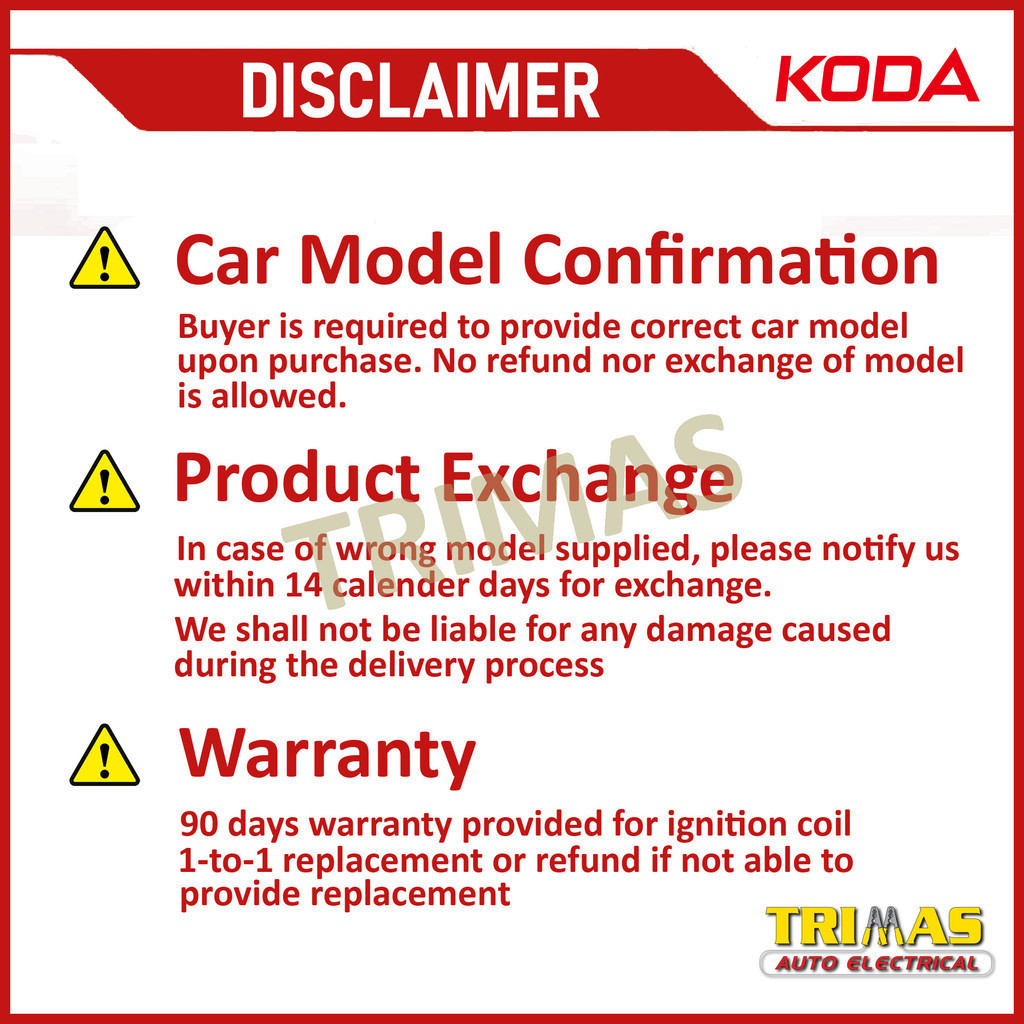 KODA Ignition Coil Plug Toyota Innova TGN40 2.0 Engine 1TR-FE 2004-2015 90919-02248 (1 PC)