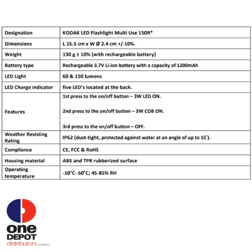 KODAK LED Flashlight Rechargeable MultiUse 150R
