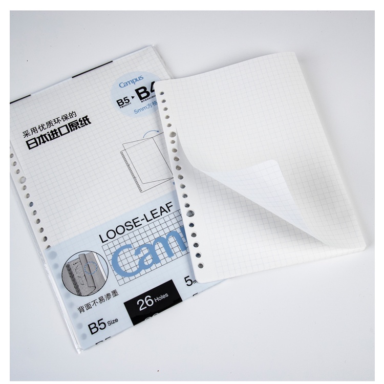 KOKUYO CAMPUS Loose Leaf Paper Wide (Folded) - A5 to A4 / B5 to B4 - 5 mm Graph ( 15 Sheets ) - 70gsm